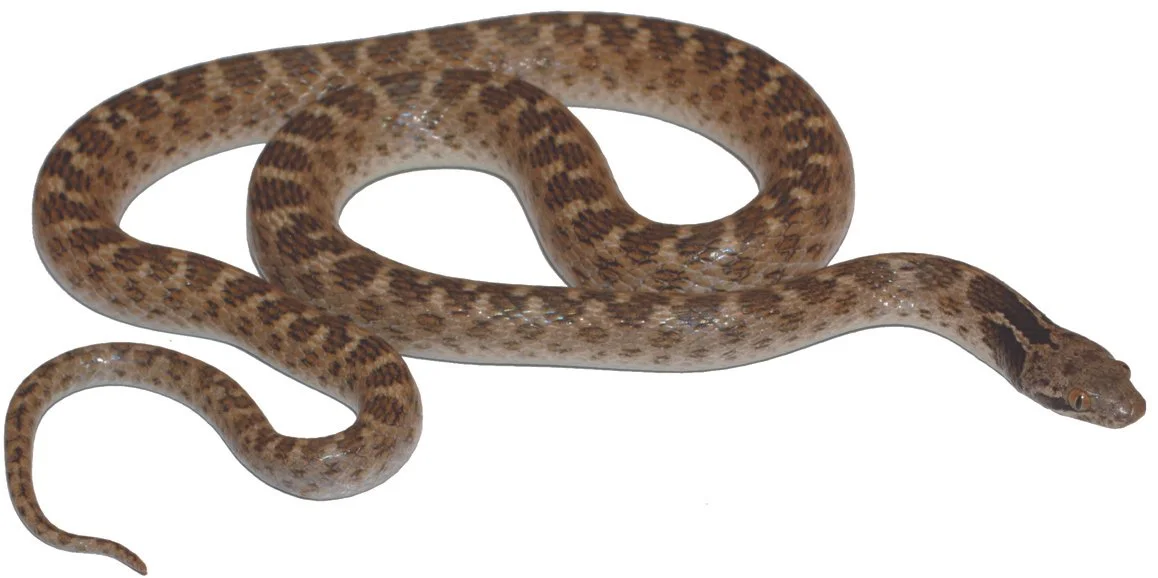 Desert Night Snake (Hypsiglena chlorophaea) This small, nocturnal snake is easily recognized by its distinctly triangular head, prominent dark eyestripe, elliptical pupils, and a pale body patterned with dark spots and a notable blotch located just behind the head. It typically inhabits arid and semi-arid environments such as deserts, grasslands, and rocky hillsides, where it actively preys on lizards and small rodents for sustenance. Due to their angular head and elliptical pupils, they are commonly mistaken for venomous species, which highlights the fact that many of the general rules for identifying venomous snakes are often misleading or inaccurate. The only reliable way to determine if a snake is venomous is to become familiar with the specific species found in your local area and understand their unique characteristics.
